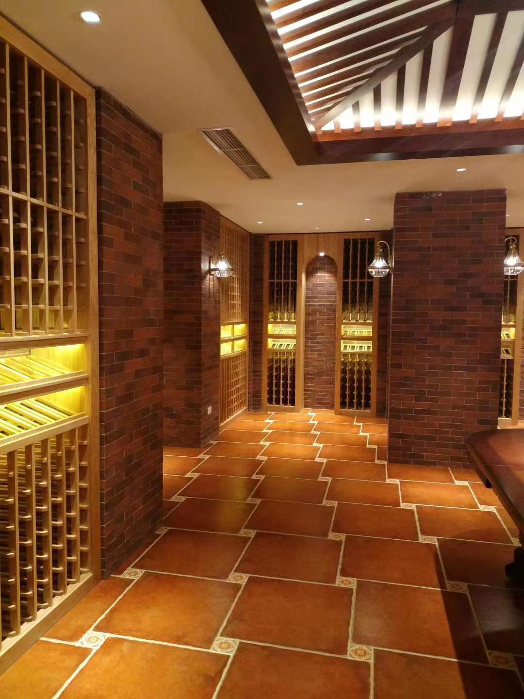 家庭酒窖在設計時,必須要考慮恒溫恒濕的效果。酒窖內的相對濕度必須在50%-80%RH之間。如果濕度下降到50%RH以下,軟木將會變干,體積減少,導致葡萄酒溢出和蒸發(fā)。同時,空氣也將侵入瓶中,加速酒品氧化,并最終發(fā)生葡萄酒的氧化(變質)。酒瓶不應垂直存放,以保證葡萄酒通過接觸軟木塞持久保持濕潤。倘若濕度高于80%RH,則很有可能會導致紙質的酒標軟木塞發(fā)霉破損。如果酒窖內過于干燥,則容易導致瓶塞干縮,酒會蒸發(fā);如果濕度過大,又會造成發(fā)霉。除了濕度以外,對溫度的把控同樣不容忽視,建議在酒窖內安裝一臺專業(yè)的恒溫恒濕的空調裝置。